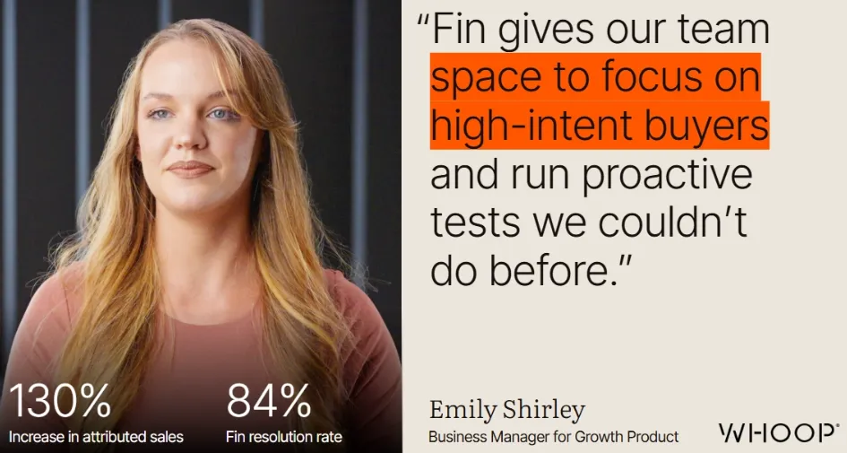 "Intercom ha transformado radicalmente nuestra estrategia de atención al cliente. Nos ha ayudado a escalar al instante, a resolver más del 50% de las consultas y a ahorrar más de 1,700 horas en el primer mes."